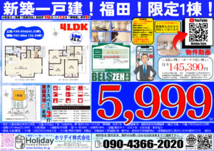 【動画UP】新築一戸建 限定1棟 大和市福田 東南角地 カースペース並列3台 4LDK!5,999万円! 2月 22, 2026 - 動画UP 5,999万円 【大和市福田3676-5付近カーナビセット】