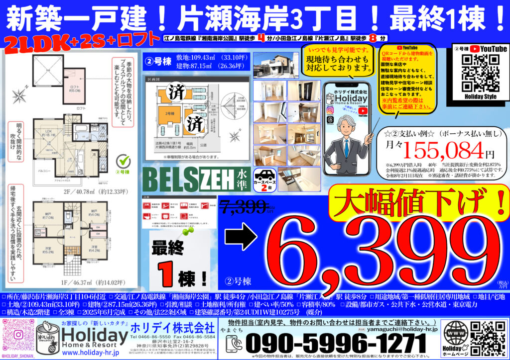 | 物件名称 | 新築一戸建 全3棟 最終1棟 片瀬海岸3丁目 「湘南海岸公園」駅徒歩4分 | ||