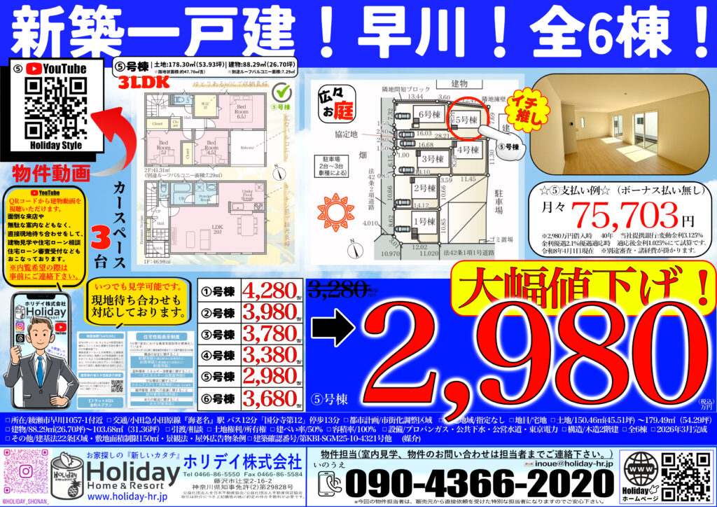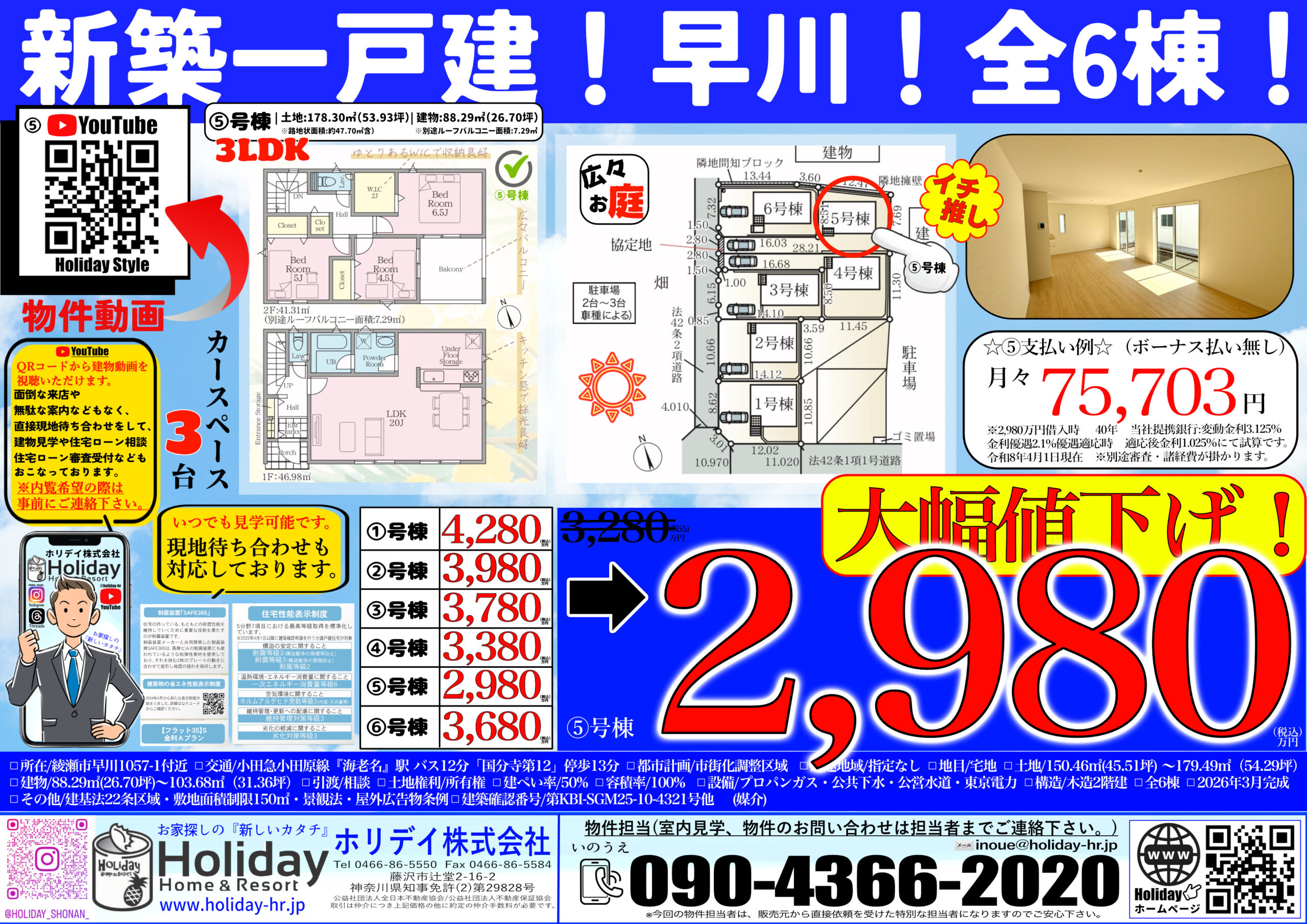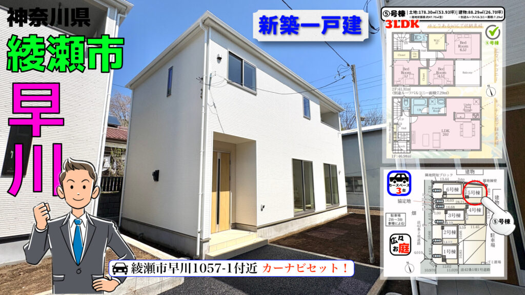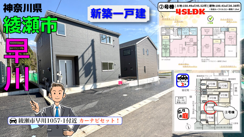 | 物件名称 | 新築一戸建 綾瀬市早川 全6棟 全棟45坪以上 カースペース3台 | ||