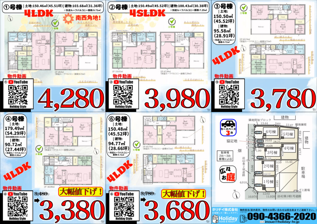 | 価格 | ①4,280万円 ②3,980万円 ③3,780万円 ④3,380万円 ⑤2,980万円 ⑥3,680万円 (税込) | ||