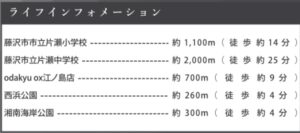 | 交通 | 江ノ島電鉄線「湘南海岸公園」駅徒歩4分/小田急江ノ島線「片瀬江ノ島」駅徒歩8分 | ||