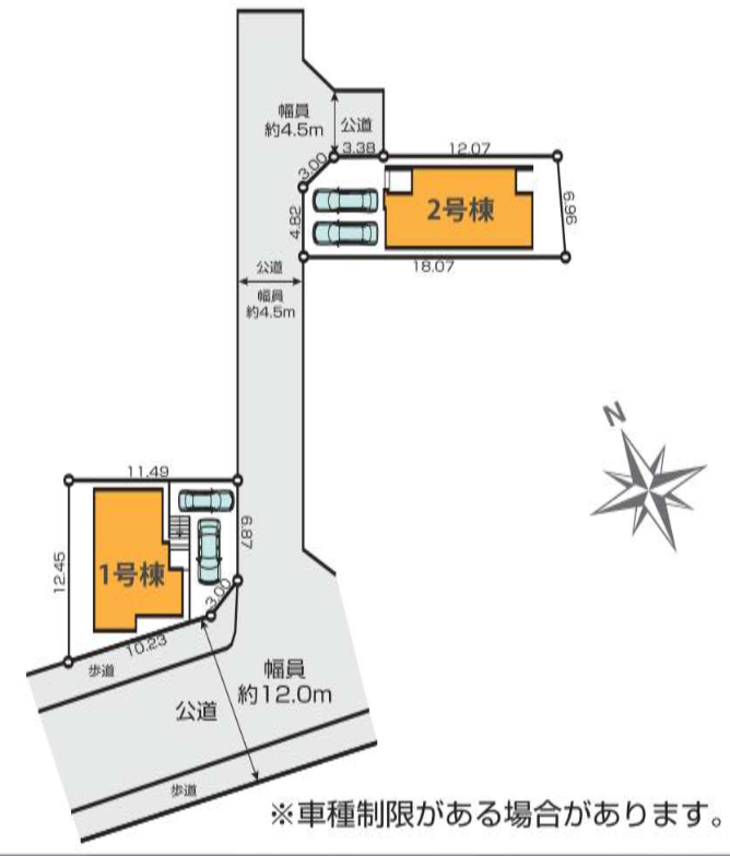 駐車場 接道状況 ①南西側約12m公道・南東側約4.5m公道/②北東側約4.5m公道・北西側約4.5m公道