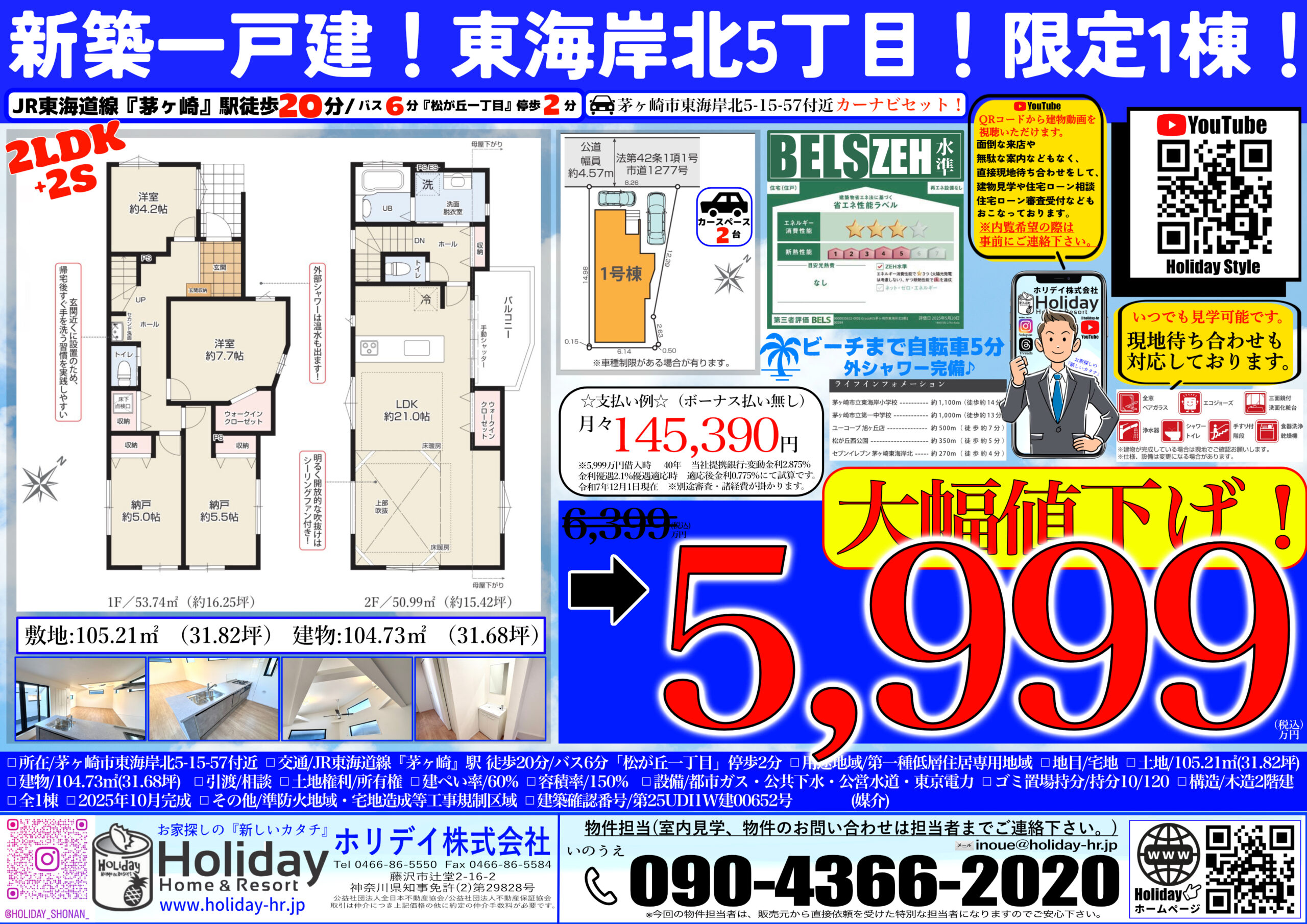 新築一戸建 限定1棟 茅ヶ崎市東海岸北5丁目 海まで自転車5分